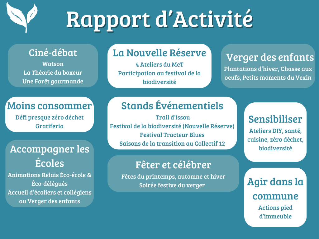 Après une année 2025 riche en événements et animations (une 30 aine !), les adhérents du Mantois en Transition se sont réunis pour faire le bilan et préparer 2026 lors de l’AG du 2 février 2025. Grâce à l’implication des bénévoles et des prestataires de l’association, nous avons réussi à agir tout au long de l’année auprès d’un public diversifié. Voici un aperçu de toutes nos actions.